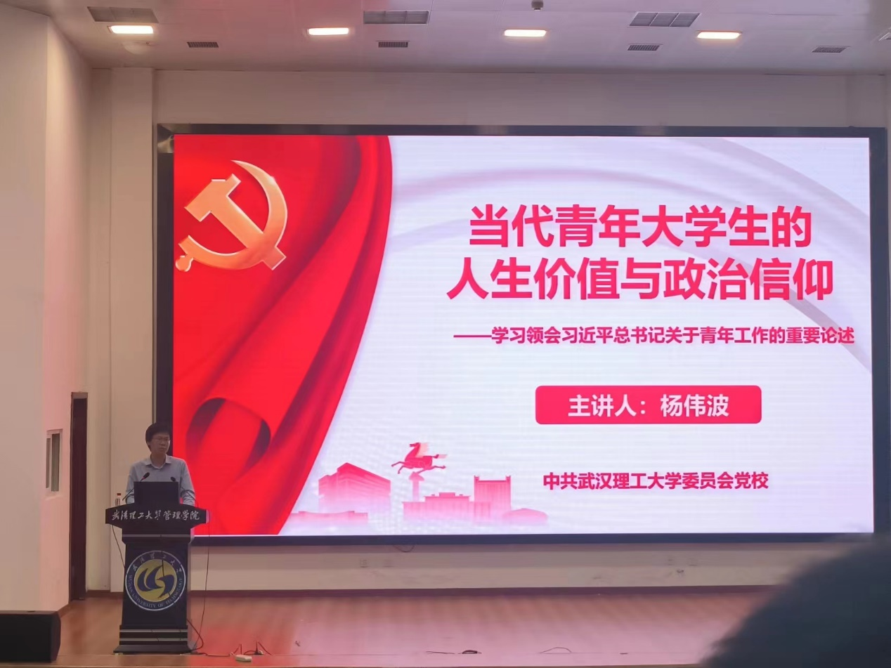 管理成人在线 党委副书记杨伟波副老师以《当代青年大学生的人生价值与政治信仰——学习领会习近平总书记关于青年工作的重要论述》为主题进行党课第三讲。杨伟波副书记向大家分享了习近平总书记对新时代青年的要求,鼓励各位学员牢记习近平总书记的殷切嘱托,期待学员们能够积极主动用最新理论武装头脑,努力成长为有思想、能吃苦、敢担当的新时代好青年。