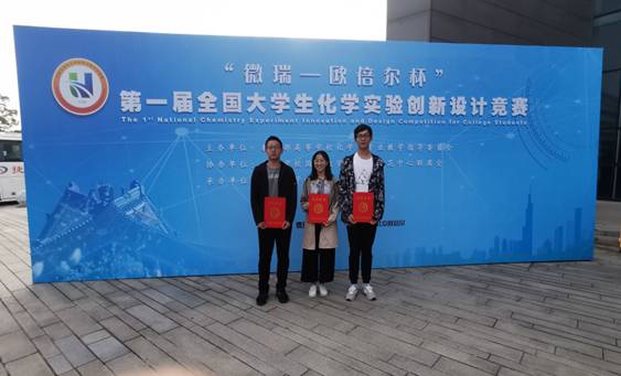 2019年10月12 - 13日,“第一届全国大学生化学实验创新设计竞赛”在南京大学仙林校区举行,来自全国包括北京大学、复旦大学、中国科技大学、武汉大学等在内的87所高校261名化学类本科生和200余名大学化学实验教师和专家参加了本次竞赛。经过激烈的角逐,成人在线成人在线 谭俊杰、许颖、姚文高三位同学组成的参赛队伍喜获全国一等奖。