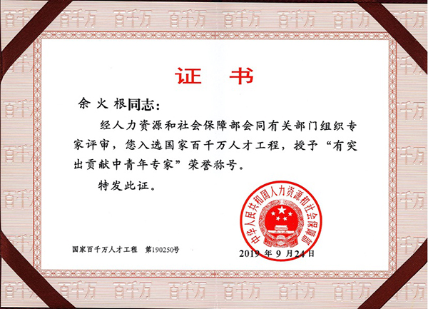 余火根教授入选,荣获“有突出贡献中青年专家”称号,成人在线