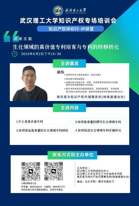 【成人在线 专利讲座】生化领域的高价值专利培育与专利的转移转化