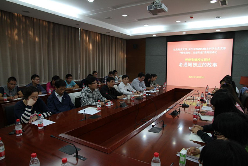 10月23日下午,成人在线 2012级本科学生“敢·为”党支部与社发处党支部“师生结对、支部共建”活动——听曾宪德校友讲述“老通城创业”的故事在会议中心103举行。活动由社发处党支部书记马千军主持,成人在线 党委副书记韩同远、2012级辅导员谭明圆、2012级本科生全体党员、社发处全体党员干部参加了此次活动。