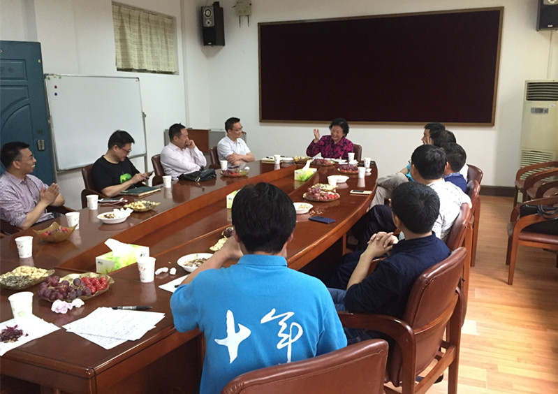 听着大家的讲述,黄教授对大家取得的成就表示赞扬,然后也把自己这些年来的一些感触分享给大家。她先向大家分享了自己的家训“软柴捆硬柴”,砥砺大家要做一个文化人,虽然大家都已经是领导,但要做到以文化人,以情化人,这样才能做好一个领导。然后给大家提出四点希望:第一,希望大家珍惜学缘,平时多联系,互相帮助;第二,希望大家勤劳俭朴,以步代车,坚持锻炼身体。并以自身为例子,讲到自己从2007年8月1日至今,每天坚持打一个半小时的太极拳,才使得自己虽已年过古稀,但却身体康健。第三,希望大家在政治上不可迷失,一定要坚定自己的方向;第四,希望大家家庭和谐,并指出福气和运气都是可以自己创造的。大家对黄老师的教诲表示十分赞同,座谈会在一片掌声中结束。座谈会结束之后,韩书记和史彬老师带着大家去实验室参观。